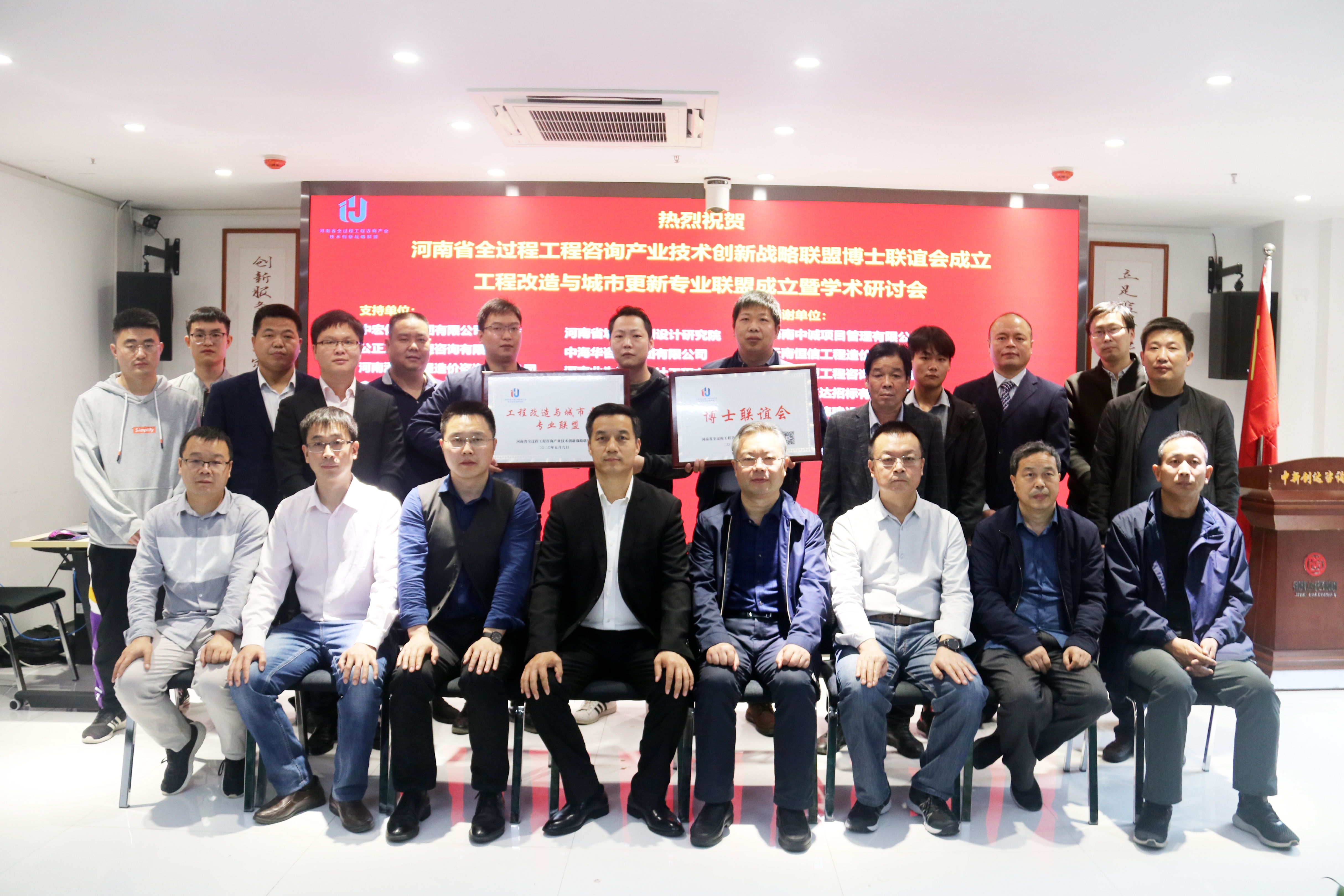2020年5月9日,由中新創達咨詢有限公司牽頭組織的河南省全過程工程咨詢產業技術創新戰略聯盟博士聯誼會、工程改造與城市更新專業聯盟成立暨學術研討會在創達咨詢總部召開,會議采用現場+遠程視頻+直播形式。