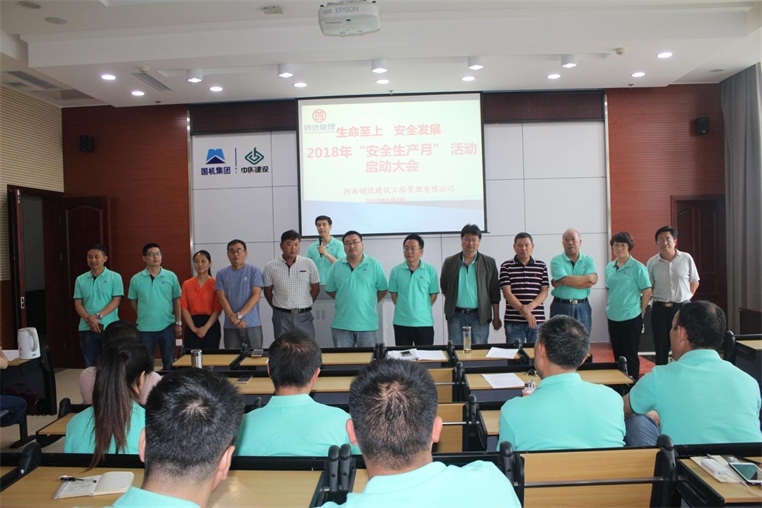 6月2日上午,以“生命至上 安全發(fā)展”為主題的創(chuàng)達(dá)管理2018年安全月活動(dòng)在公司總部17樓會(huì)議室舉行,公司董事長(zhǎng)楊明宇、執(zhí)行董事徐希萍、執(zhí)行總裁高志偉出席會(huì)議,公司各中心負(fù)責(zé)人、在鄭項(xiàng)目部主要負(fù)責(zé)人參加了動(dòng)員會(huì),會(huì)議由工程管理中心總經(jīng)理王恒瑩主持。