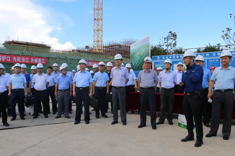 8月2日,安徽省皖江辦副主任、省發改委綜合處處長何春一行到創達監理的蕪湖朱家橋污水處理廠項目調研,蕪湖市副市長程剛、省發改委基礎產業處處長汪毅、長江生態環保集團總經理王世平及沿江九省市發改委及縣委、縣政府等有關領導共計60余人陪同調研。