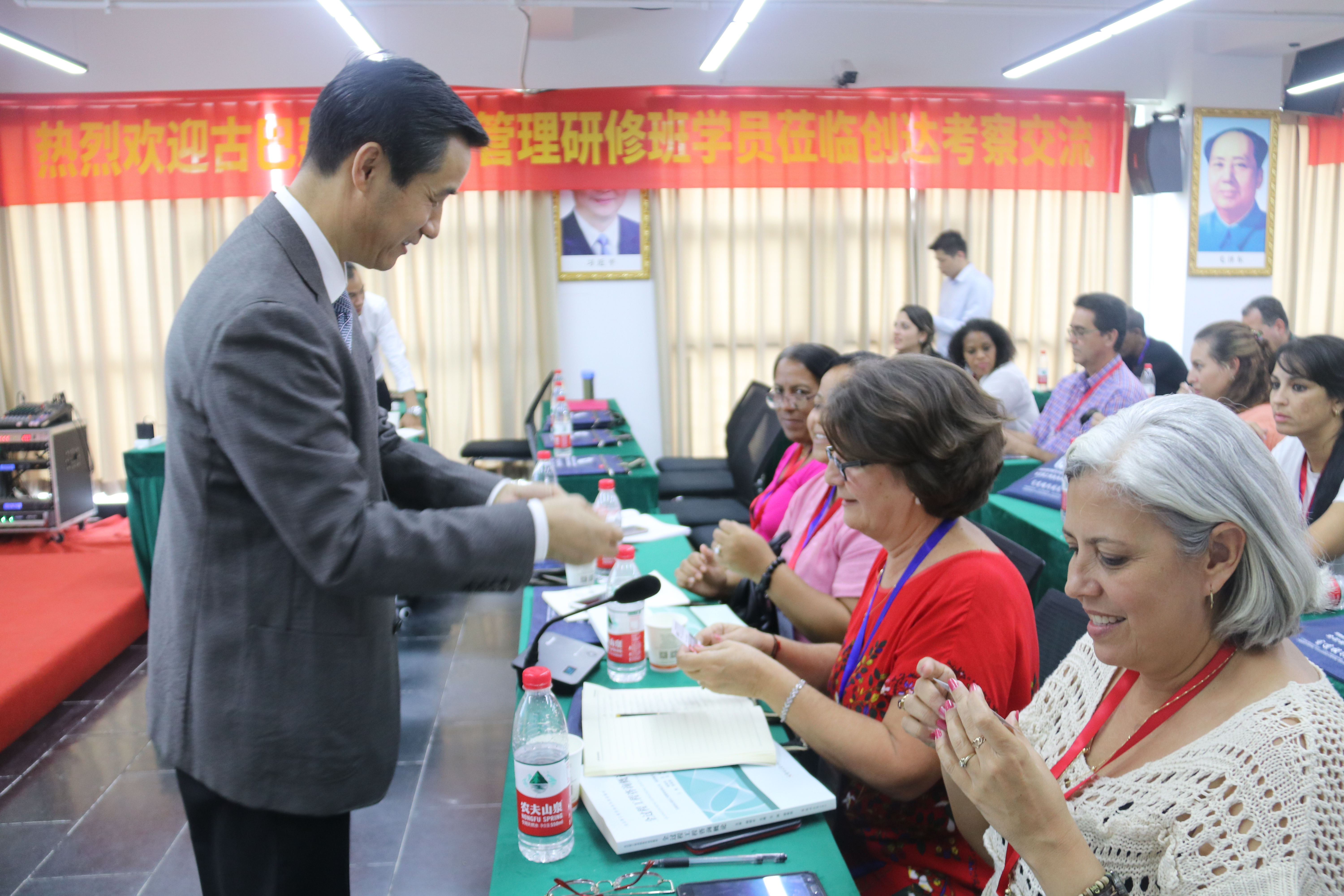 古巴建筑部的依娜維斯女士首先代表研修班全體學員對創達的熱情招待和精心安排表示衷心感謝。她表示,勞爾·卡斯特羅·魯斯書記是中國的老朋友,一直致力于中古兩國友好交流合作,非常榮幸能被授予“友誼勛章”,同時感謝楊董事長為大家傳來的喜訊,希望通過本次機會交流建筑經驗與心得,加強交流合作,實現合作共贏。