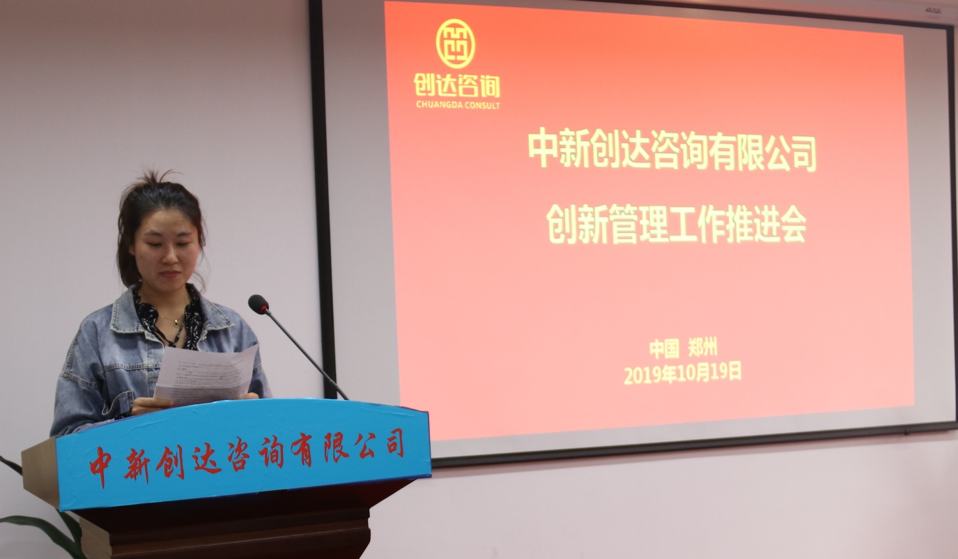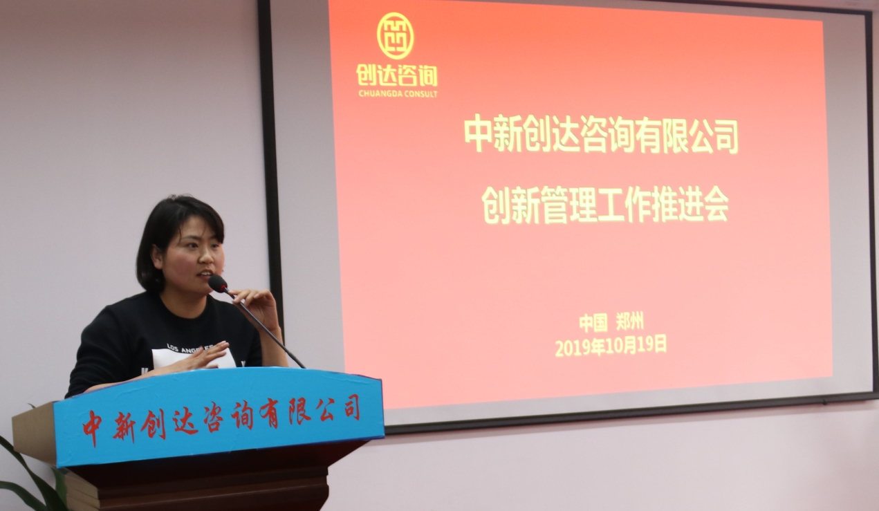 10月19日下午,創達咨詢在總部八樓會議室召開創新管理工作推進會,集思廣益,群策群力,創新工作,明確方向,助力企業創新發展。公司董事長楊明宇、執行董事徐希萍、黨支部書記董高峰出席會議,各中心負責人、全體機關人員及在鄭項目部部分人員參加本次會議。