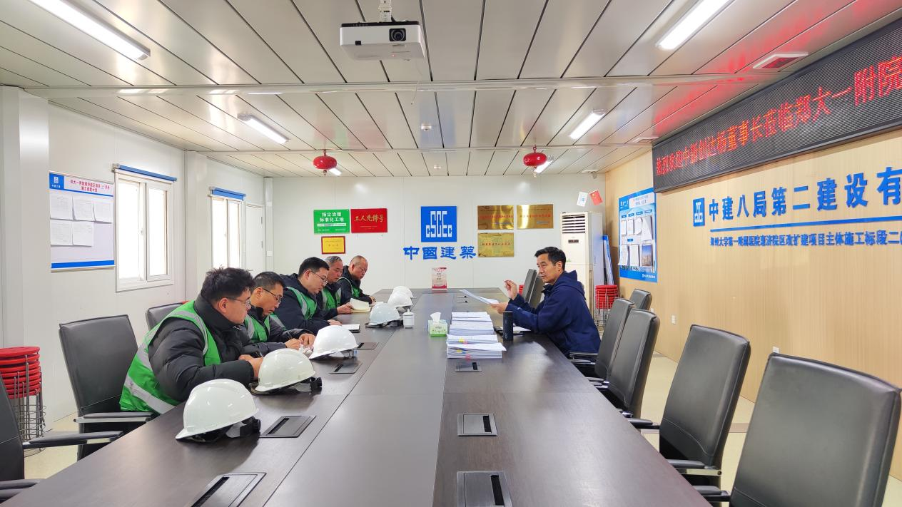 2024年12月8日上午,董事長楊明宇到鄭州大學第一附屬醫院(惠濟院區)改擴建項目檢查冬季施工和管理成果自評工作。實地查看項目現場,檢查項目管理資料,聽取項目負責人丁東關于施工進度、文明施工及安全質量管控等方面的匯報,對現場管理工作給予高度肯定。